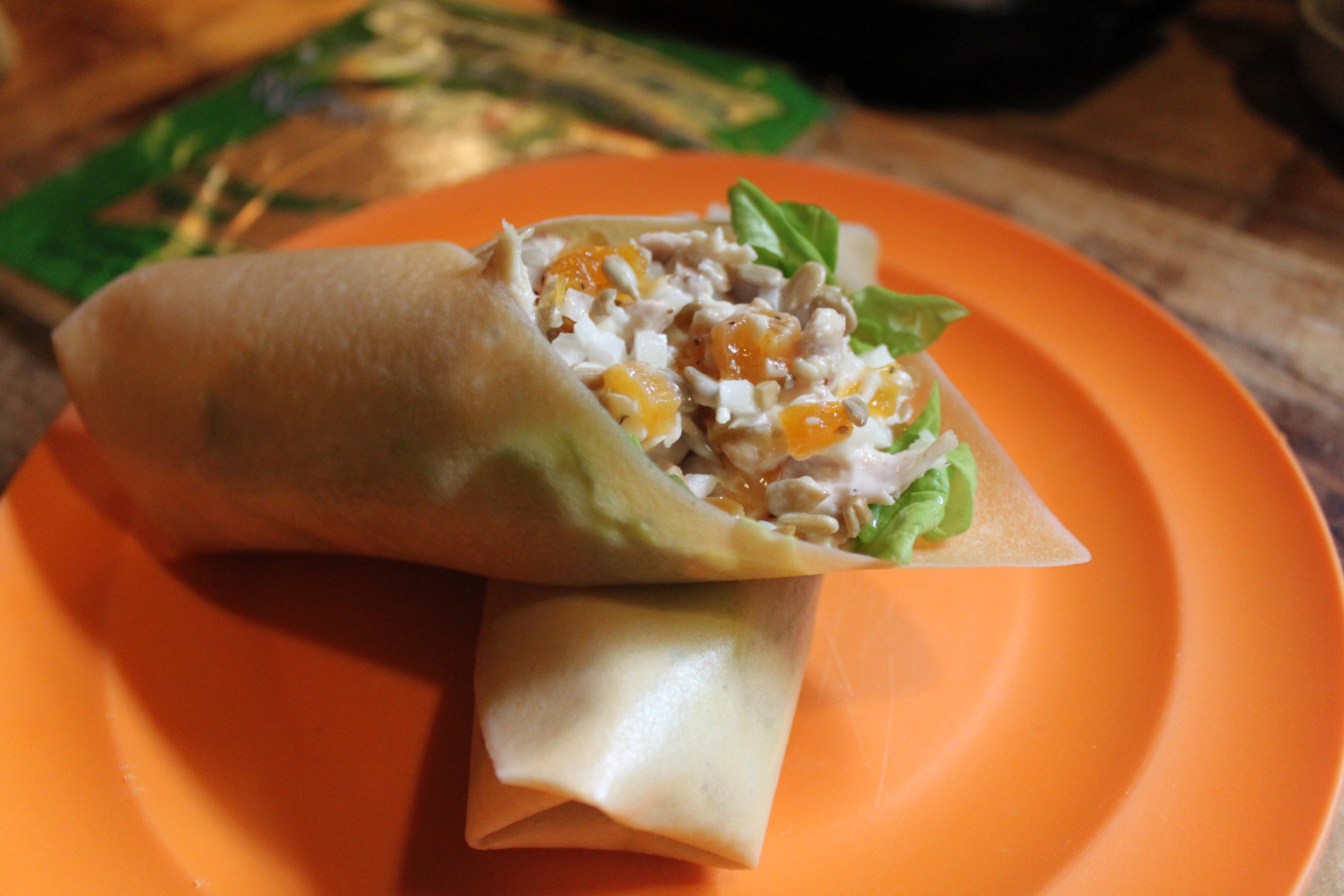 I pretty much always have a rotisserie chicken in the fridge, even before the switch to Paleo. It is just too easy to work with during the busy, work week! Plus, I love chicken salad! Since going Paleo, however, I haven’t really had it because, well, what am I going to eat it with? No more bread. No more crackers. Then along came my discovery of Pure Wraps, and I am back in business! This is awesome because chicken salad is a versatile, quick weekday lunch! My chicken salad is different literally every time I make it, and it all depends on what I have on hand. My go-to faves are apricots, walnuts, onion and tarragon, which is what I happened to have on hand tonight. The key for me is the tarragon, or Mexican Mint Marigold. My mom turned me onto this herb a few years ago and it has quickly become one of my favorites, especially in chicken salad! If you don’t have it, you could sub in any herb you have. Rosemary would be nice.